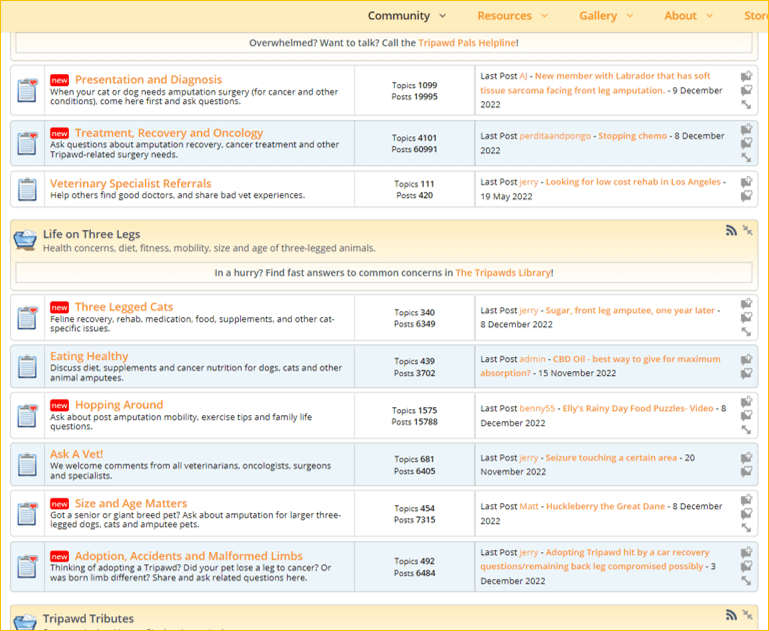One of the first things I did when Trixie came home was start looking for information about tripod dogs on the internet. I’ll always be grateful to the folks who run Tripawds. It’s a free community forum that gave me a huge confidence boost, access to some awesome specialists and also a voice to express my concerns among friends: